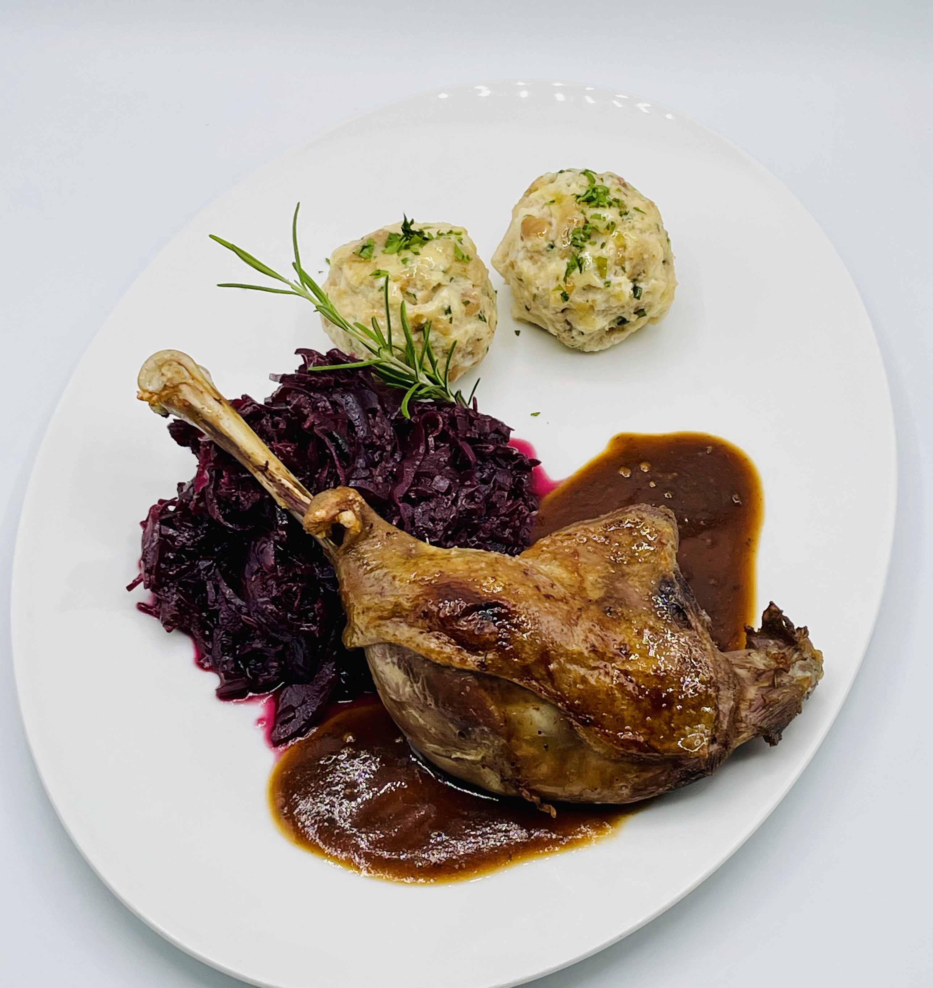Produktinformationen "Gänsekeule mit Beilagen (Portion)"